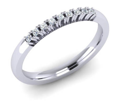Loading... Please wait...G124 Claw set diamond wedding ring:- This design has the claws set into the wedding band to give the ring a traditional wedding ring height which makes the low set ring sit nicely against most engagement rings. The 2mm court band has 9 x 1.3mm brilliant cut (round) diamonds, Colour G, VVS clarity, set in a beautiful low claw setting. Perfect for the customer with a busy life style, court rings are rounded on the outside and rounded on the inside, each diamond is hand measured, symmetrically cut for maximum sparkle, every stone matching to get that perfect claw setting. Also available in a Flat Top Court design.