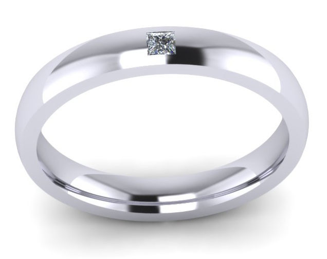 Loading... Please wait...G52 Invisible set diamond wedding ring:- This single stone invisible set ring is set on a 3mm court shape band with one Princess cut stone set into the band. The classic design suits men or women and the design is court shaped with an internal and external dome for strength and comfort and it has 1 x 1.8mm Princess cut (square) diamond, Colour G, VVS clarity, set into the ring. The diamond is hand measured and symmetrically cut for maximum sparkle. This design is also available on a flat top court shape.