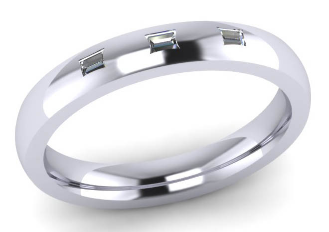 3mm court set with 3 x 0.09ct Baguette Diamonds ( 3 x 2mm Baguette cut (rectangle) Colour G, VVS clarity, set in single invisible setting. Perfect for the