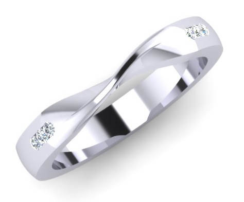 Loading... Please wait...G117 channel set Mobius twist diamond wedding ring:- The mobius twist has been designed to fit against a solitaire engagement ring. This design has small diamonds in channels each side of the twist, the band is a 3mm flat top court with 6 x 1.3mm brilliant cut (round) diamonds 3 diamonds on each side, Colour G, VVS clarity, set in a beautiful channel setting. Perfect for the customer who needs more space on her wedding finger and wants her wedding ring to fit closely against her engagement ring. Flat top court rings are flat on the outside and rounded on the inside, each diamond is hand measured, symmetrically cut for maximum sparkle, every stone matching to get that perfect channel setting. This ring is also available in the rounded court design.