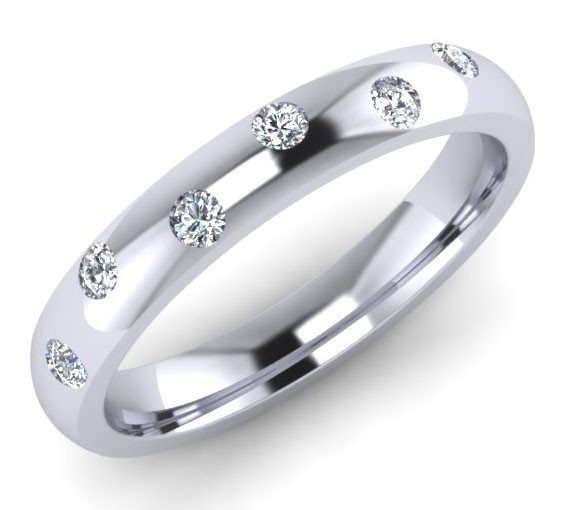 Loading... Please wait...G48 Invisible set diamond wedding ring:- This design is set into a 3mm court with 6 x 1.8mm brilliant cut (round) diamonds dotted along the top of the ring, the diamonds are Colour G, VVS clarity. This design is ideal for the customer wanting diamonds but who still wants to see the precious metal of their choice. Court rings are rounded on the outside and rounded on the inside for maximum strength, each diamond is hand measured, symmetrically cut for maximum sparkle, every stone matching to get that perfect setting. This ring is also available in a flat top court shape or with square diamonds.