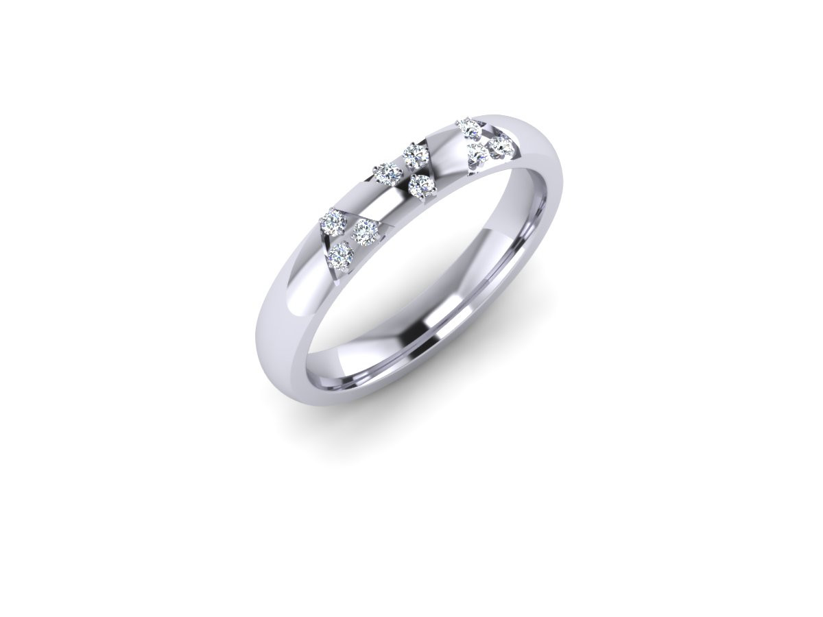 Loading... Please wait...G40 Pave set Diamond wedding ring:- This modern 3mm court design has 9 x 1.3mm brilliant cut (round) diamonds, Colour G, VVS clarity, the ring is set with 9 pave set diamonds in blocks of 3 set as a triangle on the top third of the ring. Court rings are rounded on the outside and rounded on the inside for maximum strength, each diamond is hand measured, symmetrically cut for maximum sparkle, every stone matching to get that perfect Pave setting.