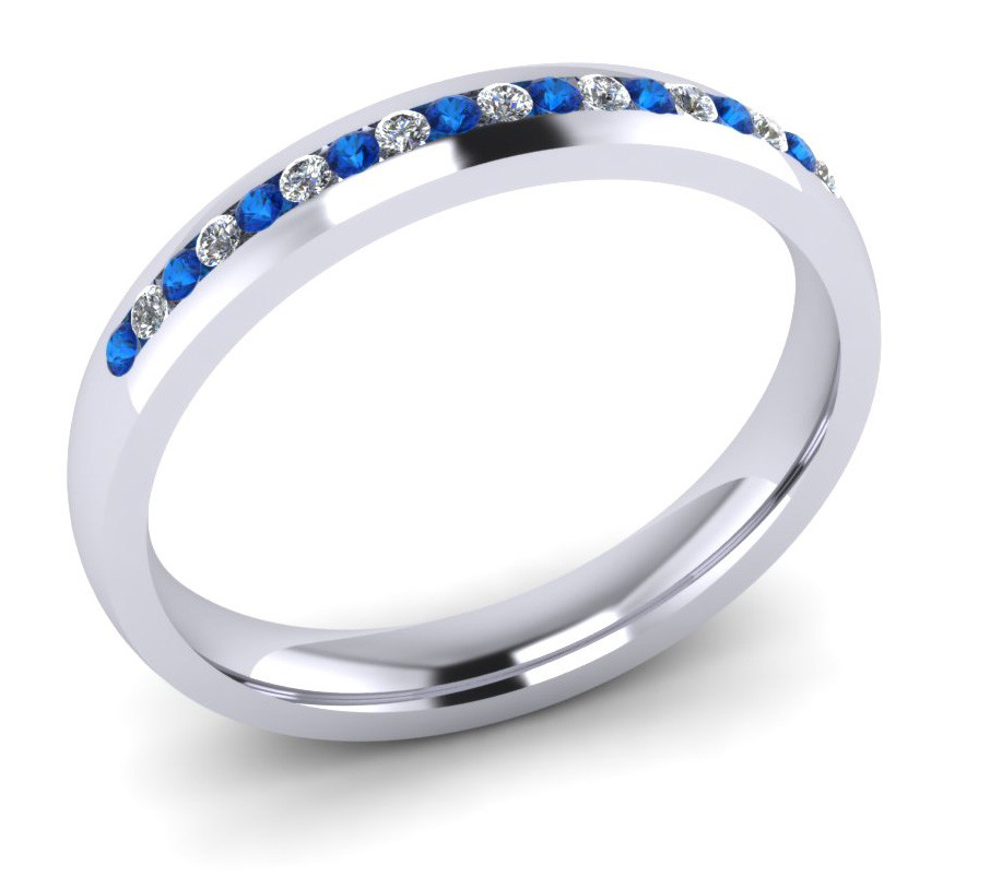 3MM Court Comfort fit shape Eternity ring Channel set with 20x1.3mm stones 10 brilliant cut Ceylon sapphires and 10 brilliant cut diamonds colour G, Clarity VS1 - Total stone weight 0.25ct Eternity Rings