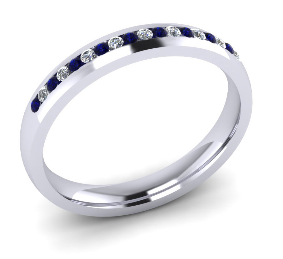 3MM Court Comfort fit shape Eternity ring Channel set with 20x1.3mm stones 10 brilliant cut dark blue sapphires and 10 brilliant cut diamonds colour G, Clarity VS1 - Total stone weight 0.25ct Eternity Rings
