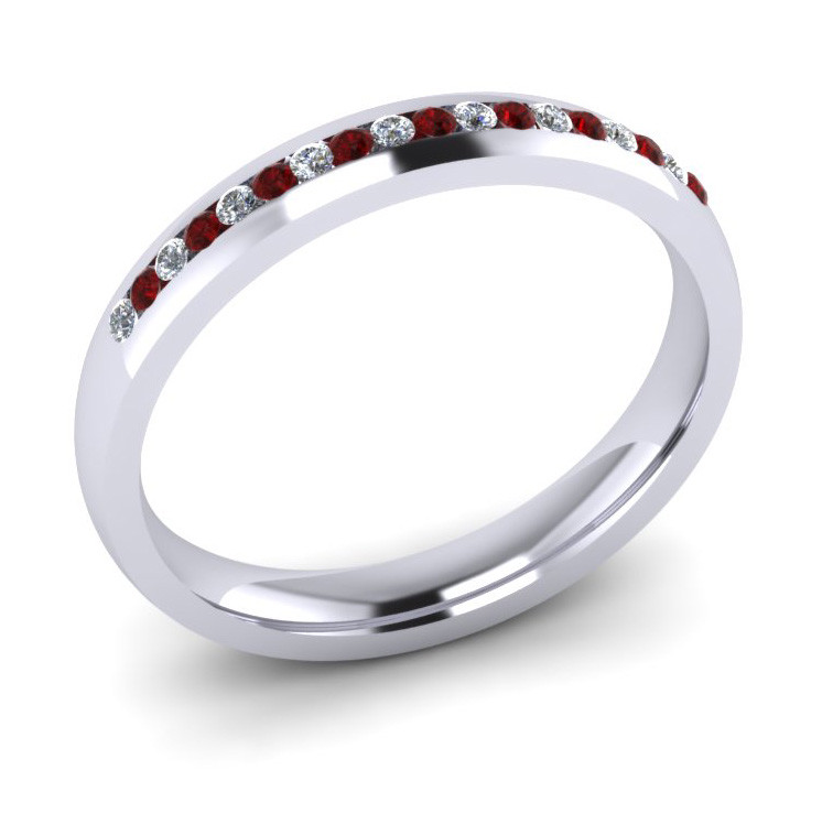 3MM Court Comfort fit shape Eternity ring Channel set with 20x1.3mm stones 10 brilliant cut Rubies and 10 brilliant cut Diamonds colour G, Clarity VS1 - Total stone weight 0.25ct Eternity Rings