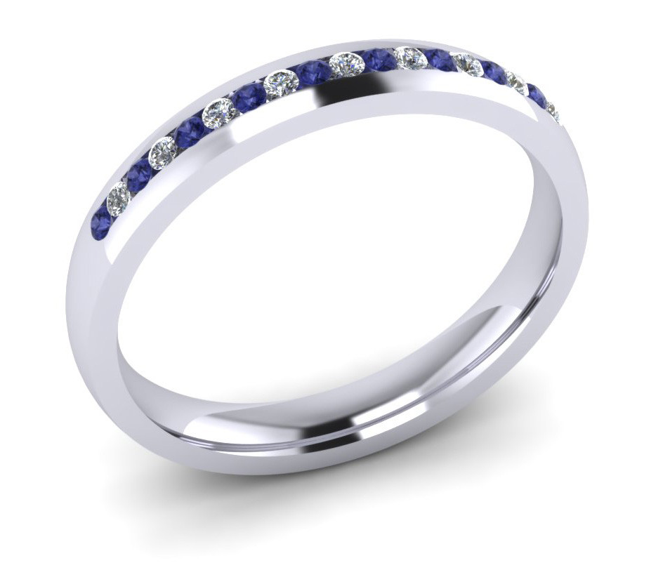 3MM Court Comfort fit shape Eternity ring Channel set with 20x1.3mm stones 10 brilliant cut tanzanite and 10 brilliant cut diamonds colour G, Clarity VS1 - Total stone weight 0.25ct Eternity Rings