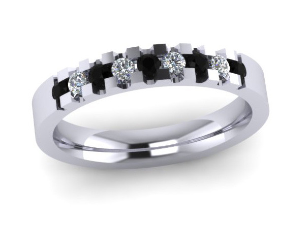 3MM Flat Comfort Fit shape Eternity ring claw set with 9x1.8mm stones 5 brilliant cut black diamonds and 4 brilliant cut white diamonds colour G, Clarity VS1 - Total Diamond weight 0.30ct Eternity Rings