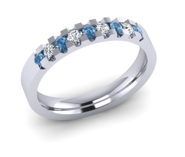 3MM Flat Comfort Fit shape Eternity ring claw set with 9x1.8mm stones 5 brilliant cut Treated Blue diamonds and 4 brilliant cut white diamonds colour G, Clarity VS1 - Total Diamond weight 0.22ct Eternity Rings