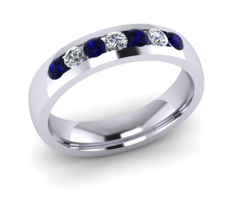 4MM Comfort Fit shape Eternity ring channel set with 7x2.3mm 4 brilliant cut dark blue sapphires and 3 brilliant cut diamonds colour G clarity VS - Total stone weight - 0.40ct Eternity Rings