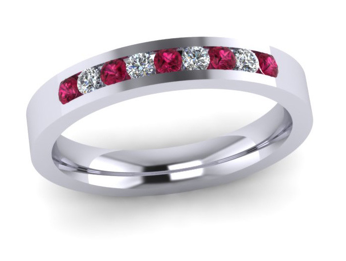 3MM Flat Comfort Fit shape Eternity ring channel set with 9x1.8 mm stones 5 brilliant cut pink sapphires and 4 brilliant cut diamonds colour G Clarity VS - Total stone weight 0.27ct Eternity Rings