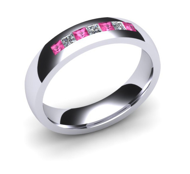 3mm Low Domed Comfort fit shape Eternity ring channel set with 1.8mm stones 4 princess cut Treated Pink Diamonds and 3 princess cut Diamonds colour G,Clarity VVS - Total stone weight 0.35ct Eternity Rings
