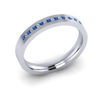 3MM Flat Comfort fit shape Eternity ring Channel set with 1.5mm stones-10 Brilliant cut blue topaz and 10 brilliant cut diamonds colour G, Clarity VS1 - Total stone weight 0.40ct Eternity Rings