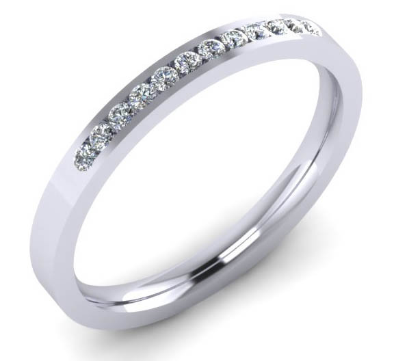Loading... Please wait...G106 Brilliant cut channel set Ladies diamond wedding ring:- The modern 2mm flat top court with 12x1.3mm brilliant cut (round) diamonds, Colour G, VVS clarity, set in a beautiful channel setting. Perfect for the customer wanting the modern and timeless look. Flat top court rings are flat on the outside and rounded on the inside, each diamond is hand measured, symmetrically cut for maximum sparkle, every stone matching to get that perfect channel set. This design is also available with a round court shape ring.