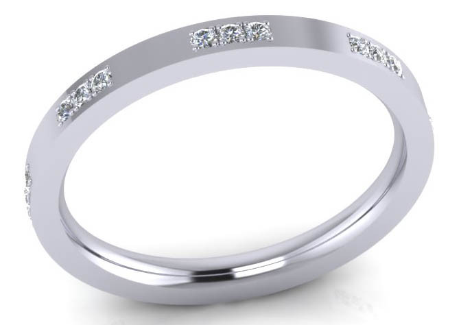 Also available in 2mm, 2.5mm, 4mm, 5mm, width rings, you can also vary the number of diamonds i.e. just have the top third or go half way around the ring and of course you can add more diamonds later if you choose one of these options. Call or e-mail for details