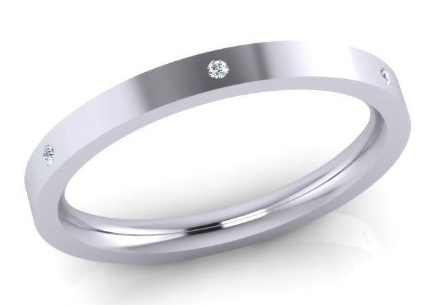 Loading... Please wait...G56 Invisible set diamond wedding ring:- This Classic design for men and women has diamonds spaced equally around the middle of the ring all invisibly set, the ring is a 3mm flat top court with 6 x 1.8mm Brilliant cut (round) diamonds, Colour G, VVS clarity. Perfect for the customer wanting not just a plain band but a little something extra with this diamond set wedding ring. Flat top court shaped rings are flat on the outside and rounded on the inside for extra strength, each diamond is hand measured, symmetrically cut for maximum sparkle, every stone matching to get that perfect invisible setting. This design is also available with square diamonds or on a rounded court shape.