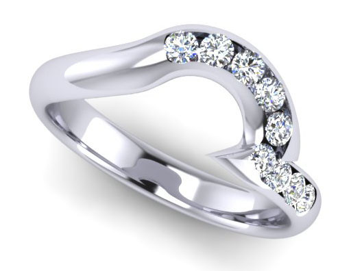 This 3mm ring is designed to fit with a single stone or three stone twisted engagement ring. The design is channel set with 9 x 1.8mm brilliant cut diamonds, colour G, clarity VVS, diamond weight 0.23ct. We will need your engagement ring for 24 hours to get the exact measurements. However if you book a free home appointment we would not need to take your engagement ring away. Please contact us to check what areas we cover or to organise sending your ring.