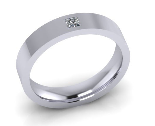 Loading... Please wait...G51 Invisible set diamond wedding ring:- This single stone channel set ring is set on a 4mm flat top court shaped band with one Princess cut stone set into the middle of the band. The classic design suits men or women and a flat top court band is flat on top with an internal dome shape for strength and comfort and it has 1 x 2.3mm Princess cut (square) diamond, Colour G, VVS clarity, invisibly set into the ring. The diamond is hand measured and symmetrically cut for maximum sparkle. This design is also available on a rounded court shape.
