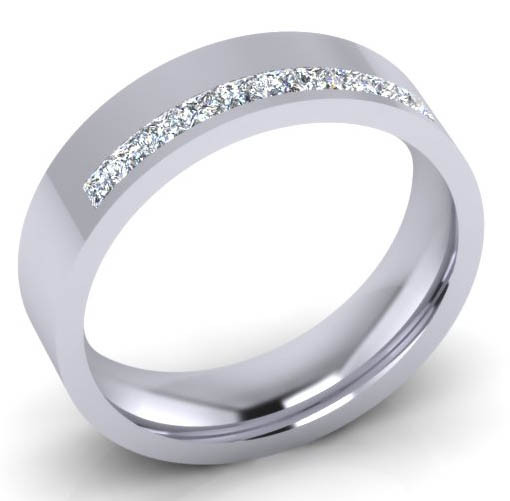 Loading... Please wait...G128 Offset Princess cut channel set diamond wedding ring:- The modern offset channel ring, a 4mm flat top court with 10x1.5mm princess cut (square) diamonds, Colour G, VVS clarity, set in a beautiful offset channel setting. Perfect for the customer wanting the modern but timeless look, flat top court rings are flat on the outside and rounded on the inside, each diamond is hand measured, symmetrically cut for maximum sparkle, every stone matching to get that perfect channel set.