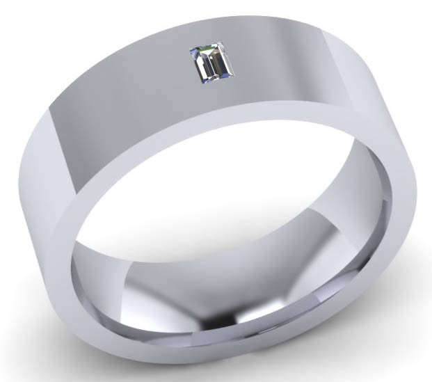 Loading... Please wait...G92 Invisible set mens diamond wedding ring:- A Classic design for men with a single diamond on the top of the ring invisibly set, the 7mm flat top court is set with 1 x 2mm x 3mm Baguette cut diamond (rectangle) Colour G, VVS clarity. Perfect for the customer wanting a hard wearing diamond set wedding ring , flat top court shaped rings are flat on the outside and rounded on the inside for extra strength and comfort, each diamond is hand measured, symmetrically cut for maximum sparkle, every stone matching to get that perfect invisible setting.