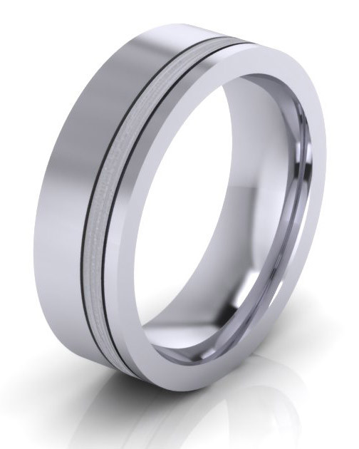 Loading... Please wait...G401 Wedding Ring this design has a slim brushed off centre line with the rest of the ring being polished. The picture is showing a 7mm wide ring on a flat top court design for maximum strength and comfort. This design is also available on a flat ring, D shape or rounded court shape. This pattern can be ordered from 4mm to 8mm wide.
