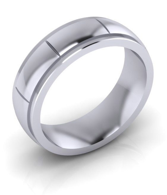 Loading... Please wait...G426 Patterned Wedding Ring this design has a wider satin look centre with lines going across the centre equally spaced around the whole ring with slim polished slightly bevelled edges. The design is shown on a 6mm rounded court design for maximum strength and comfort, but can also be made on a heavy flat shape. This pattern can be ordered from a 5mm width to 8mm width. If you have any questions please call us on 0207 405 7590 01403 733638 or e-mail goldfingerrings@gmail.com
