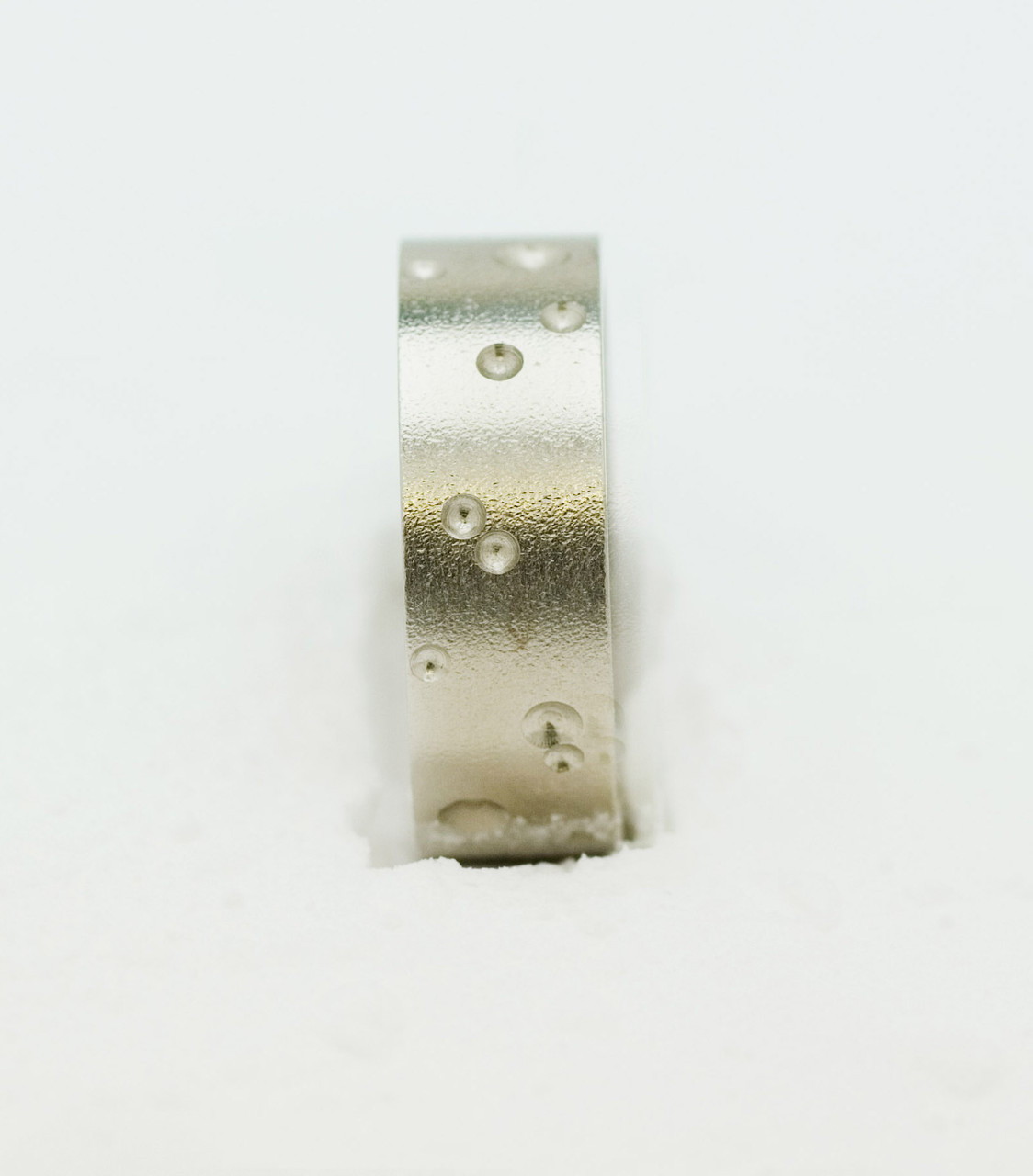 Loading... Please wait...Purdey Moon crater Wedding Ring this bespoke Purdey design has small and large moon craters dotted around the whole ring. This design is shown on a 7mm wide ring but is available to buy from 3mm to 8mm wide. The design is shown on a flat top court shape ring for maximum strength and comfort but is also available on a rounded court shape, D shape or flat ring. You can add diamonds to this design if you wish, just contact us for a quote.