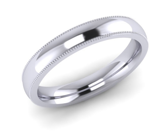 Loading... Please wait...N2L Millgrain edge Wedding Ring 4mm this diamond cut pattern is small dots all around the ring on each edge. The picture is showing a 4mm width ring but the design looks good and is available on 2mm to 8mm width rings. This design is shown on a rounded court shape ring for maximum strength and comfort but is also available on a flat top court shape ring, D shape or flat shape ring.