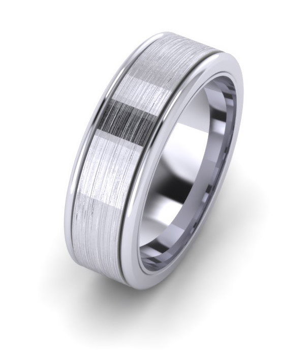 Loading... Please wait...TT1138 Patterned Wedding Ring this design has a wider brushed centre with slim polished edges. The design is shown on a 7mm flat top court design for maximum strength and comfort, but can also be made on a heavy flat shape. This pattern can be ordered from a 4mm width to 8mm width. If you have any questions please call us on 0207 405 7590 01403 733638 or e-mail goldfingerrings@gmail.com